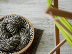 Garnbollen er laget av indisk palisandertre, som gir et robust og naturlig uttrykk. Treets struktur og fargetoner gjør hver bolle unik, samtidig som materialet er tungt nok til å stå stabilt på bordet under bruk.